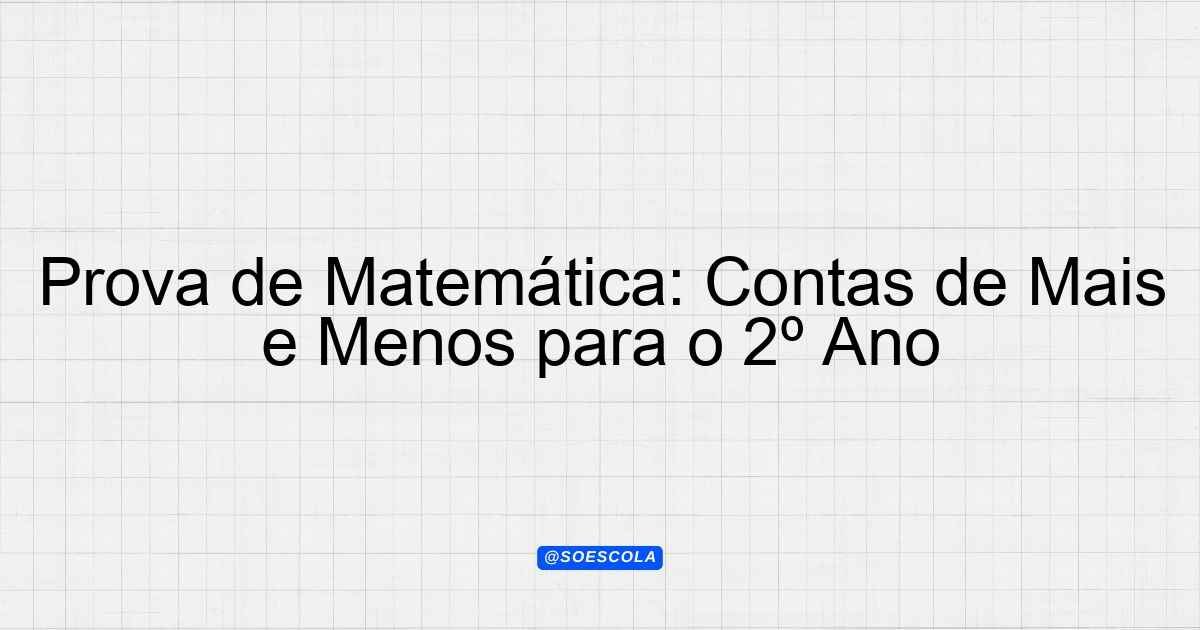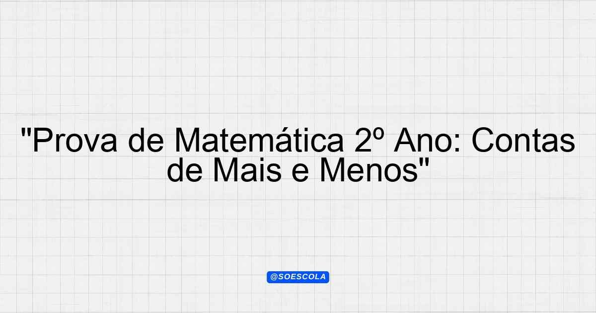 Continue lendoTema: CONTAS DE MAIS E MENOSEtapa/Série: 2º anoDisciplina: MatemáticaQuestões: 12 Prova de Matemática – 2º Ano Tema: Contas de Mais