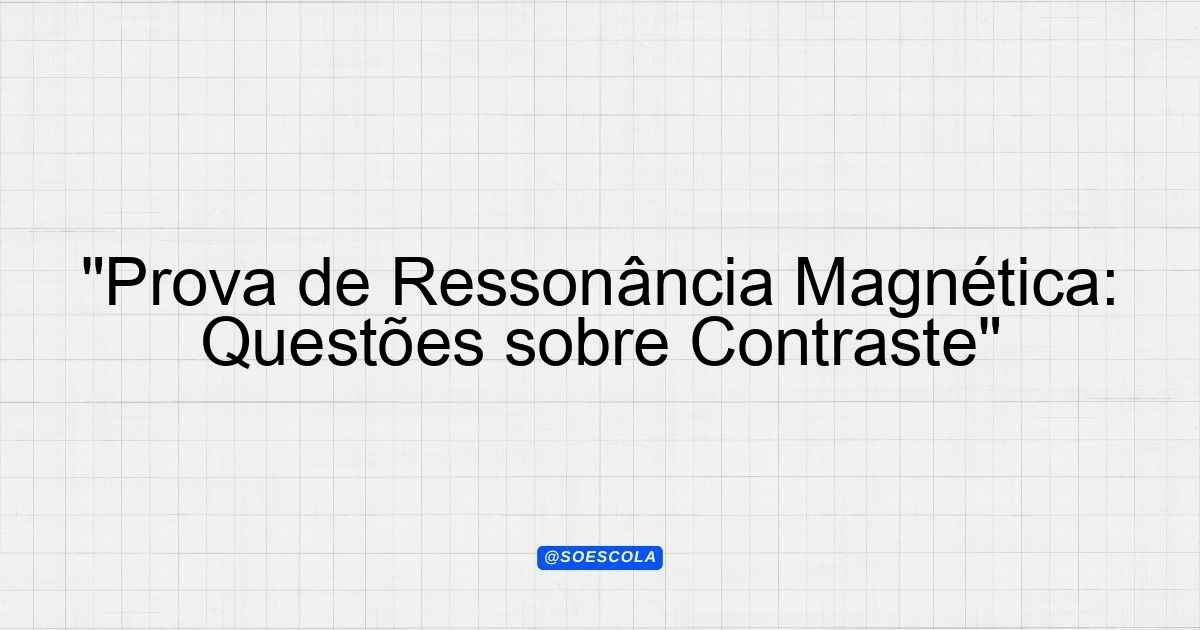 Continue lendoTema: Contraste em Ressonância MagnéticaEtapa/Série: 3º ano – Ensino MédioDisciplina: Formação Técnica e ProfissionalQuestões: 20 Prova: Contraste em Ressonância Magnética