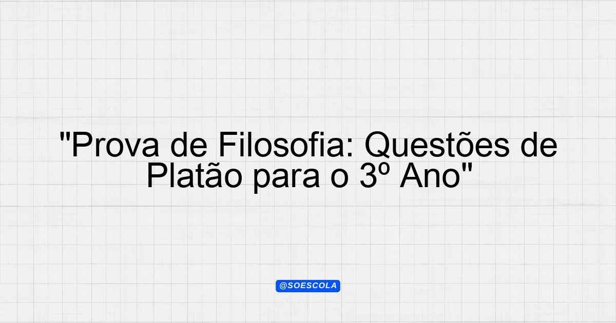 Continue lendoTema: filosofiaEtapa/Série: 3º ano – Ensino MédioDisciplina: FilosofiaQuestões: 20 Prova de Filosofia – 3º Ano do Ensino Médio Instruções: Leia
