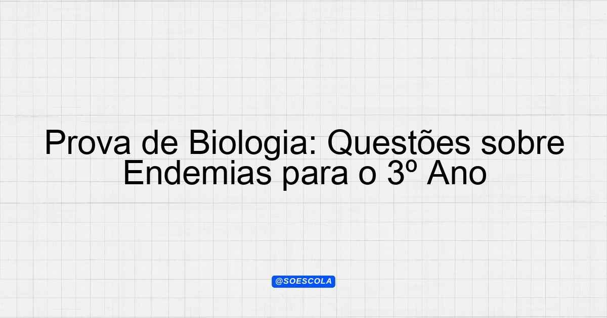 Continue lendoTema: endemiasEtapa/Série: 3º ano – Ensino MédioDisciplina: BiologiaQuestões: 10 Prova de Biologia – Tema: Endemias Instruções: Leia atentamente cada questão.