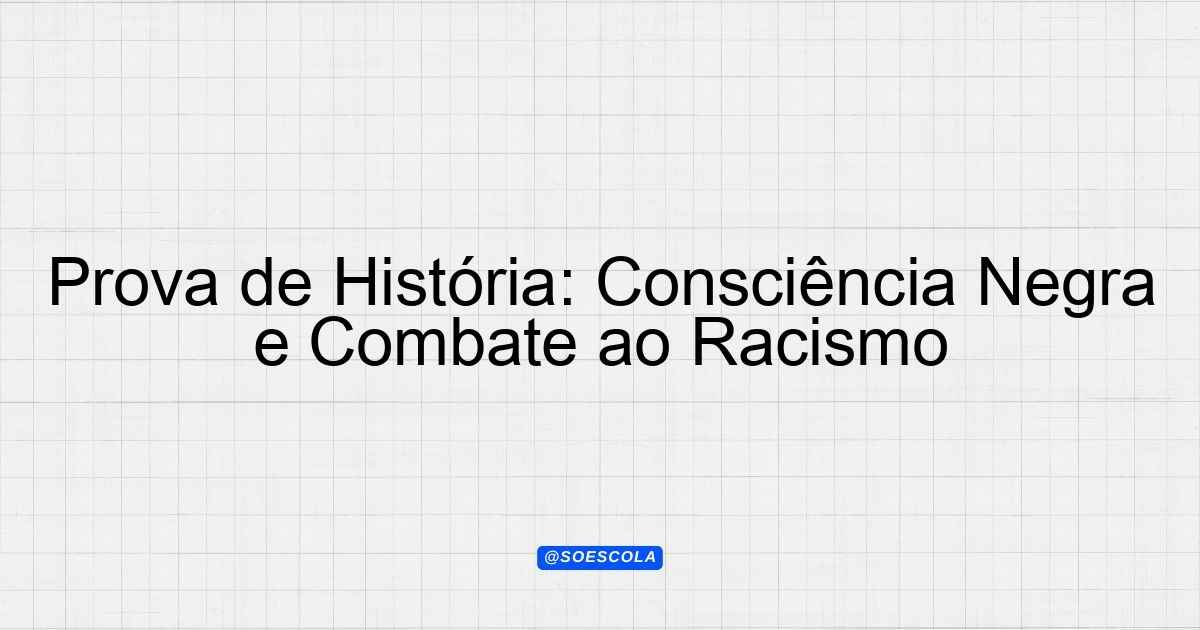 Continue lendoTema: Consciência negra, racismoEtapa/Série: 4º anoDisciplina: HistóriaQuestões: 10 Prova de História: Consciência Negra e Racismo Nome do aluno: ______________________ Data:
