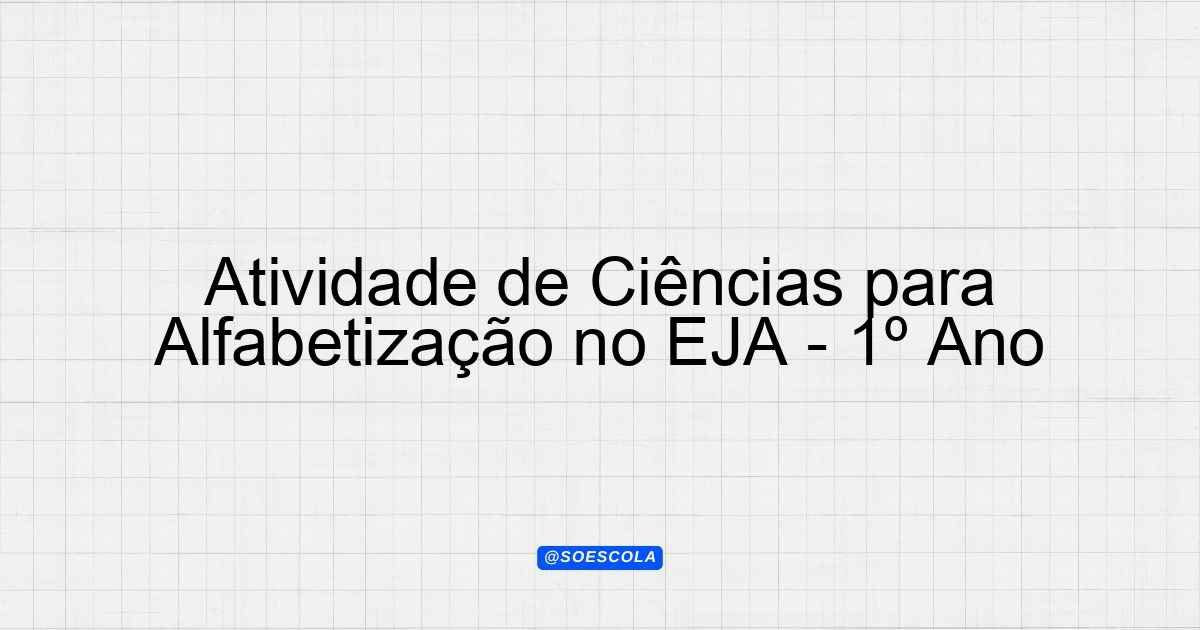 Continue lendoTema: ATIVIDADE SOBRE CIENCIAS DA NATUREZA PARA ALFABELTIZACAO DO EJAEtapa/Série: 1º anoDisciplina: CiênciasQuestões: 4 Prova de Ciências – 1º Ano