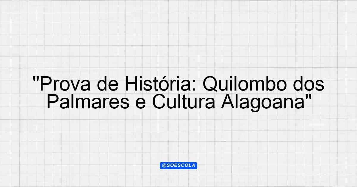 Continue lendoTema: Territorio e indentidade – quilombo dos palmares- cultura alagoana- comidas e danças- folguedosEtapa/Série: 4º anoDisciplina: HistóriaQuestões: 10 Prova de