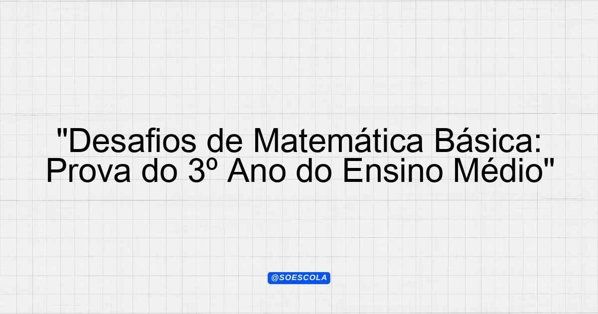 Continue lendoTema: Matemática BásicaEtapa/Série: 3º ano – Ensino MédioDisciplina: MatemáticaQuestões: 20 Prova de Matemática Básica – 3º Ano Ensino Médio Prova