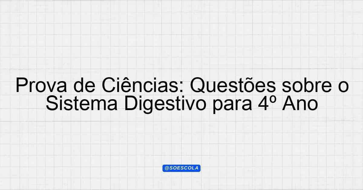 Continue lendoTema: Sistema DigestivoEtapa/Série: 4º anoDisciplina: CiênciasQuestões: 20 Prova de Ciências – Sistema Digestivo Prova de Ciências – Sistema Digestivo Nome: