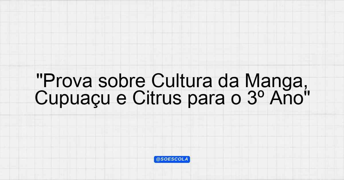 Continue lendoTema: Cultura da Manga, Cupuaçu e CitrusEtapa/Série: 3º ano – Ensino MédioDisciplina: Formação Técnica e ProfissionalQuestões: 10 Prova – Cultura