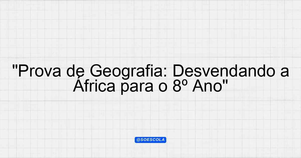 Continue lendoTema: ÁfricaEtapa/Série: 8º anoDisciplina: GeografiaQuestões: 8 Prova de Geografia – Tema: África Aluno(a): ____________________ Data: ____/____/______ Instruções: Responda as questões