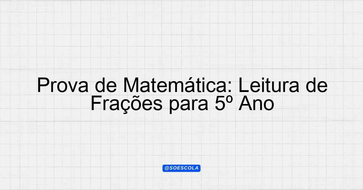 Continue lendoTema: LEITURA DE FRAÇÃOEtapa/Série: 5º anoDisciplina: MatemáticaQuestões: 20 “`html Prova de Matemática – 5º Ano: Leitura de Fração Esta prova