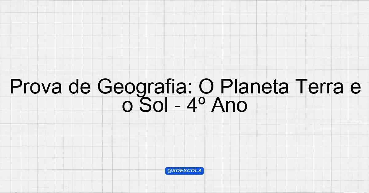 Continue lendoTema: O planeta terra e o solEtapa/Série: 4º anoDisciplina: GeografiaQuestões: 10 “`html Prova de Geografia – 4º Ano Tema: O
