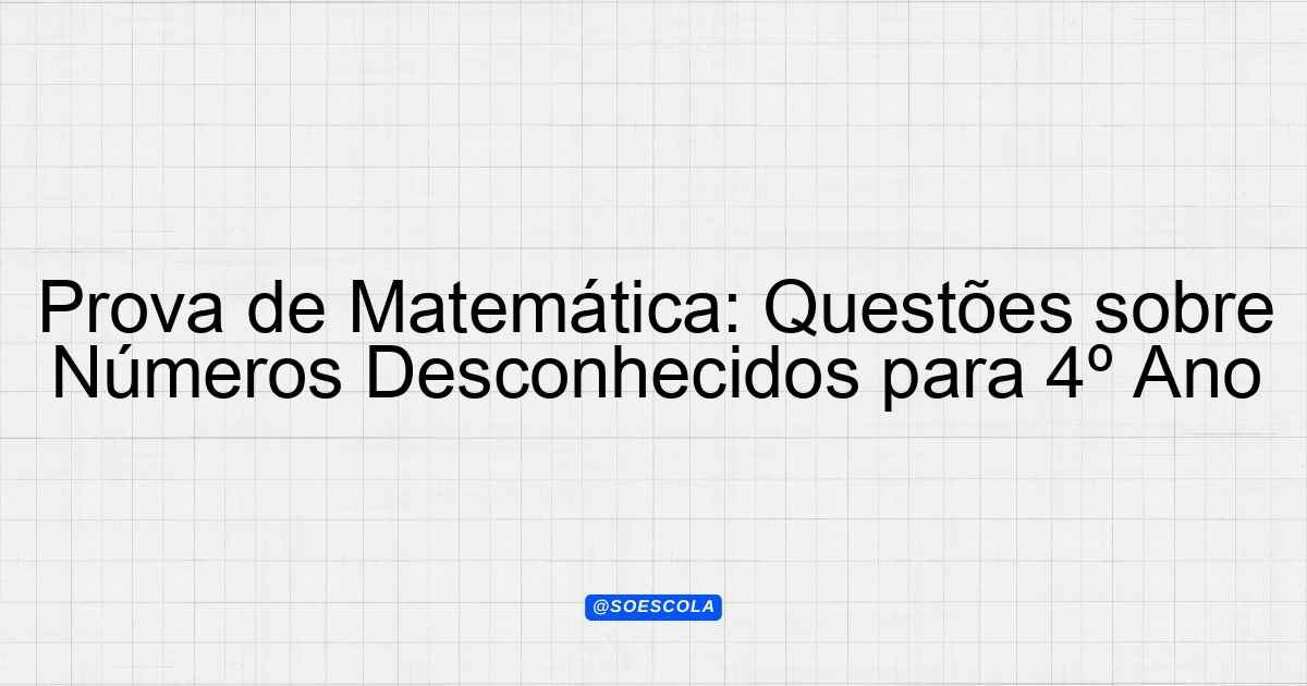 Continue lendoTema: numero desconhecidoEtapa/Série: 4º anoDisciplina: MatemáticaQuestões: 20 Prova de Matemática – 4º Ano Tema: Número Desconhecido Instruções: Responda as questões
