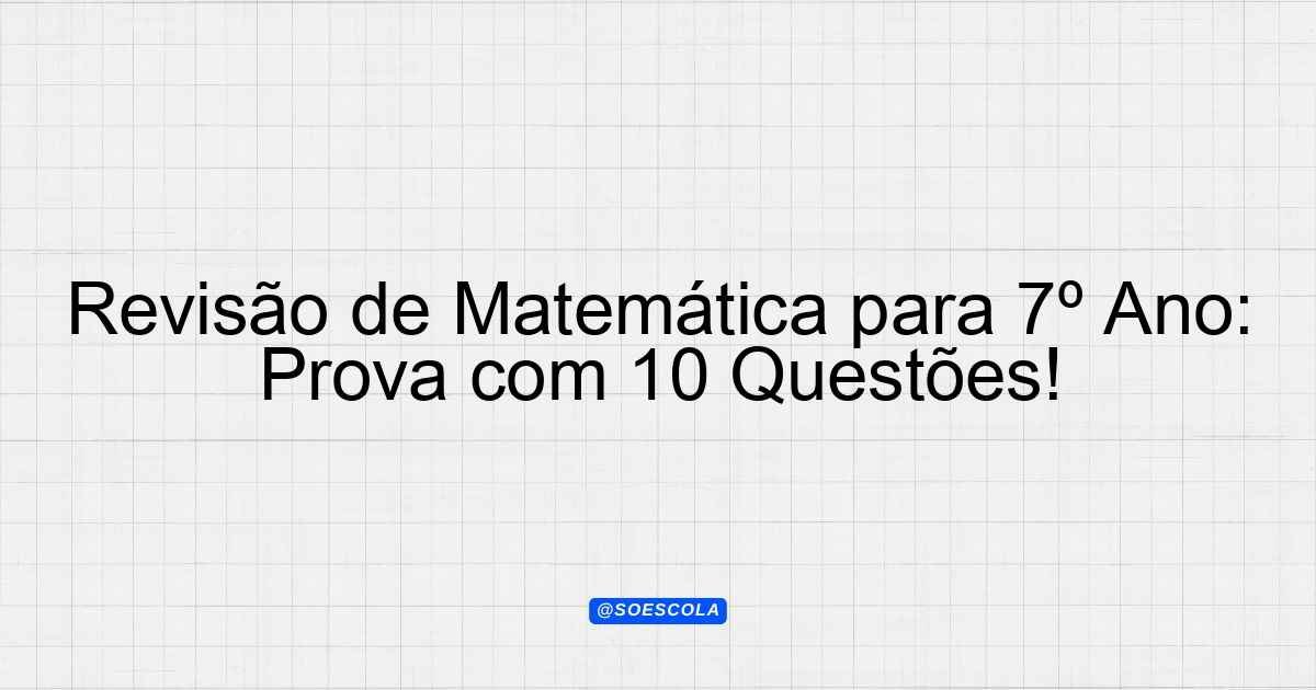 Continue lendoTema: matematica-revisão anualEtapa/Série: 7º anoDisciplina: MatemáticaQuestões: 10 Prova de Matemática – Revisão Anual Aluno(a): ______________________ Data: ____/____/____ Disciplina: Matemática 7º