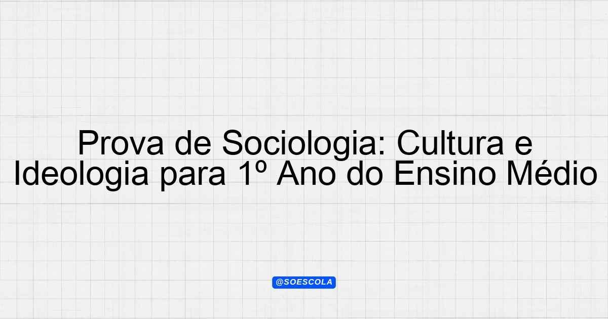 Continue lendoTema: cultura e ideologiaEtapa/Série: 1º ano – Ensino MédioDisciplina: SociologiaQuestões: 8 Prova de Sociologia – 1º Ano do Ensino Médio