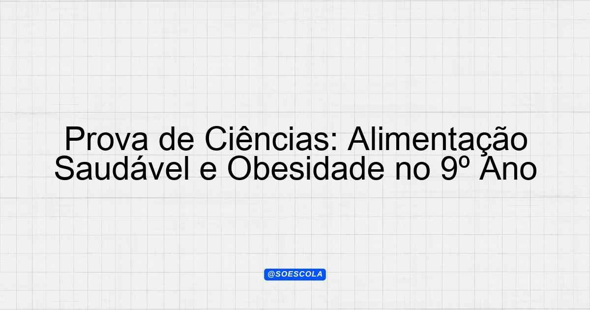 Continue lendoTema: Alimentação sauidável e problemas de obesidadeEtapa/Série: 9º anoDisciplina: CiênciasQuestões: 20 Prova de Ciências – 9º Ano Tema: Alimentação Saudável