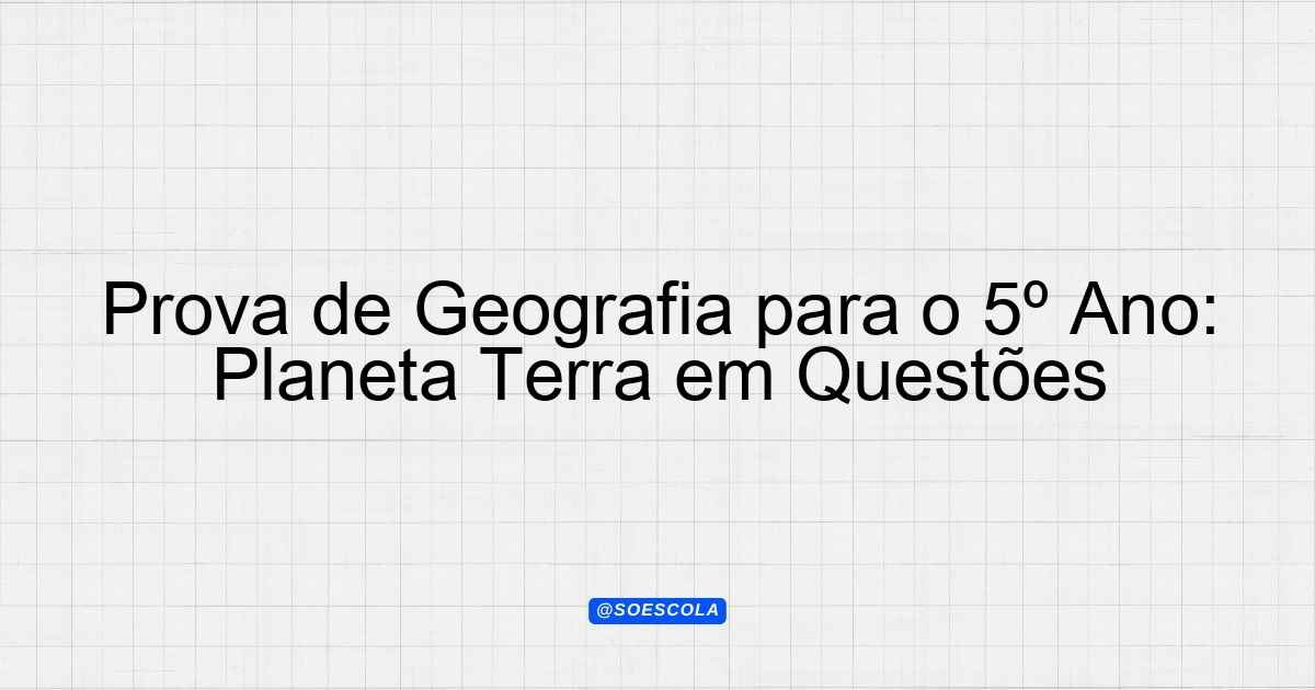 Continue lendoTema: GEOGRAFIA PLANETA TERRAEtapa/Série: 5º anoDisciplina: GeografiaQuestões: 5 Prova de Geografia – 5º Ano Tema: Geografia Planeta Terra Instruções: Responda