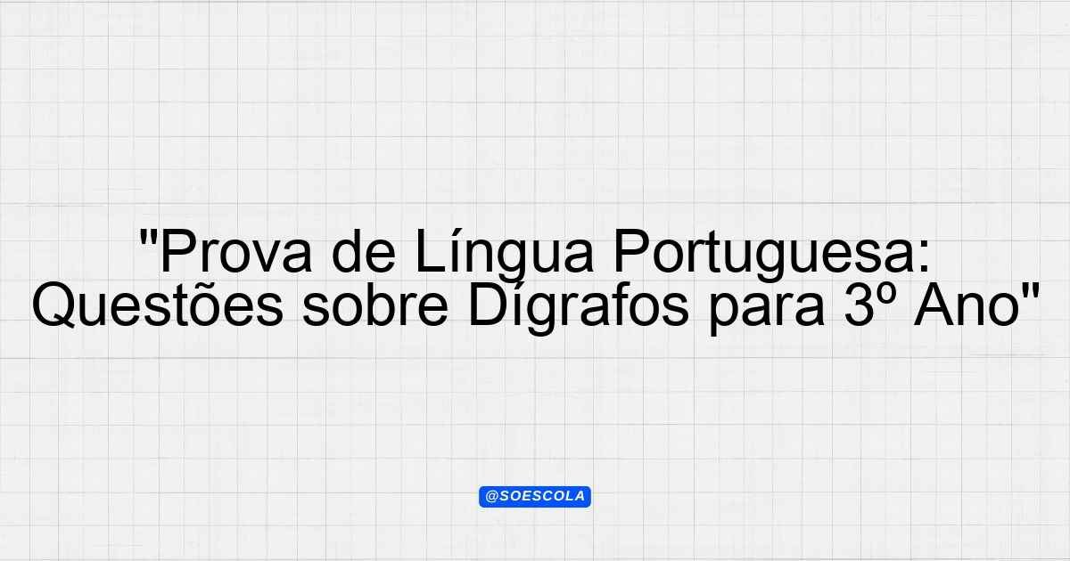 Continue lendoTema: dígrafosEtapa/Série: 3º anoDisciplina: Língua PortuguesaQuestões: 2 Prova de Língua Portuguesa – Tema: Dígrafos Nome do Aluno: ________________________ Data: ____/____/______