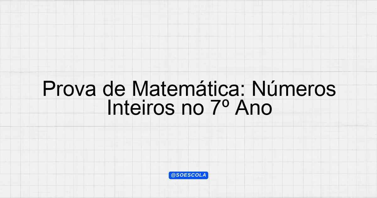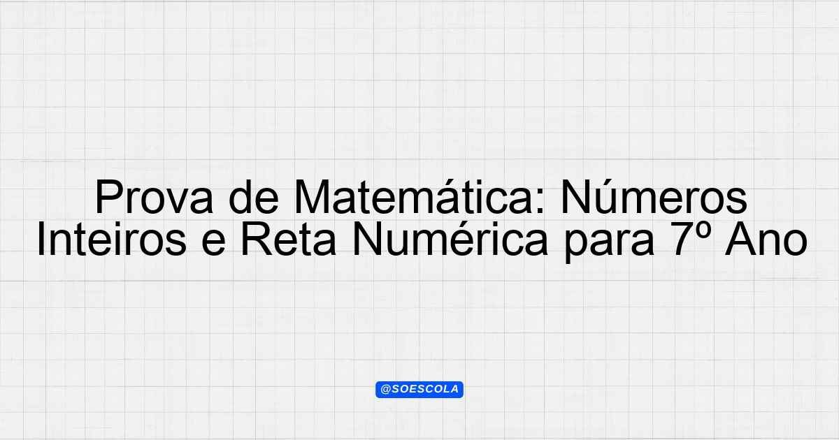 Prova de Matemática: Números Inteiros e Reta Numérica para 7º Ano