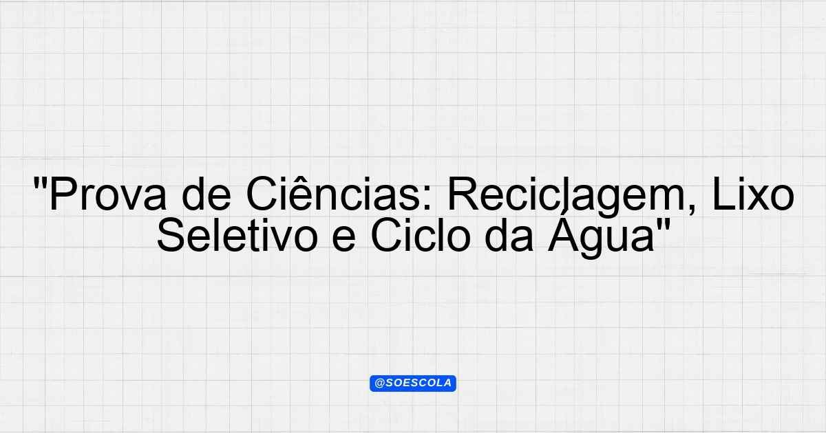 “Prova de Ciências: Reciclagem, Lixo Seletivo e Ciclo da Água”