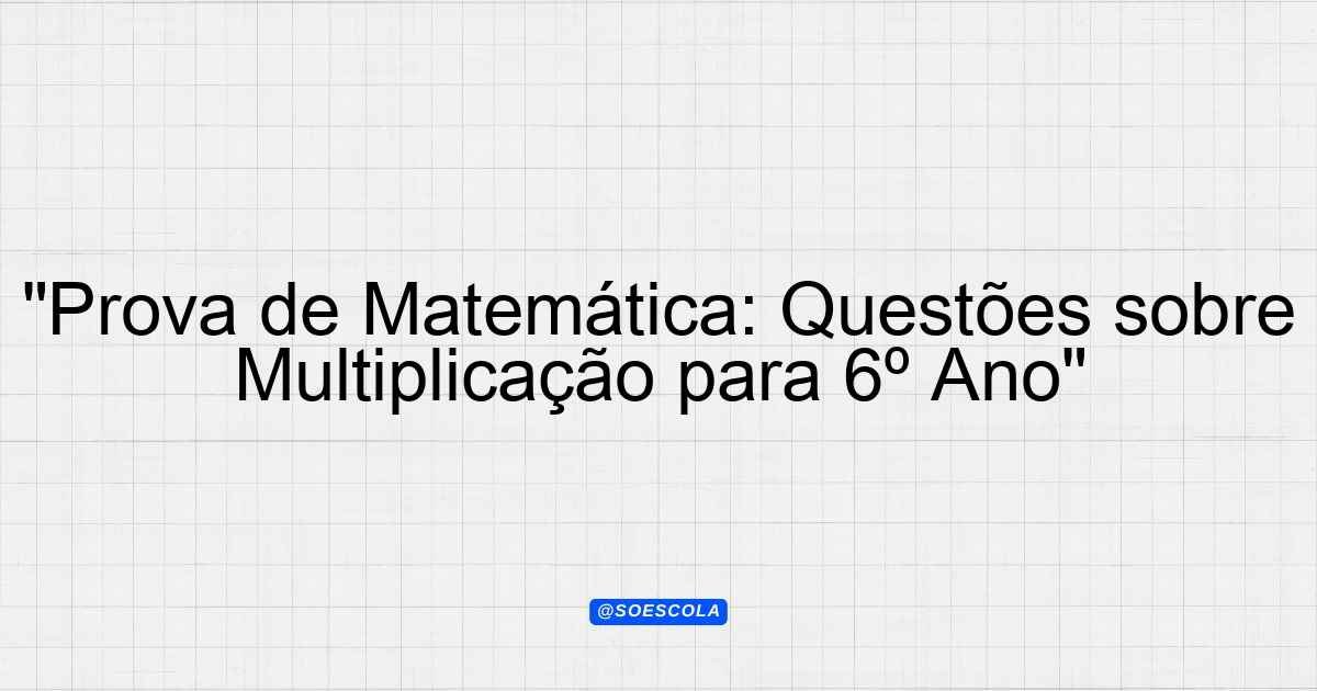 Continue lendoTema: multiplicaçãoEtapa/Série: 6º anoDisciplina: MatemáticaQuestões: 5 Prova de Matemática – 6º Ano Tema: Multiplicação Leia atentamente cada questão e responda