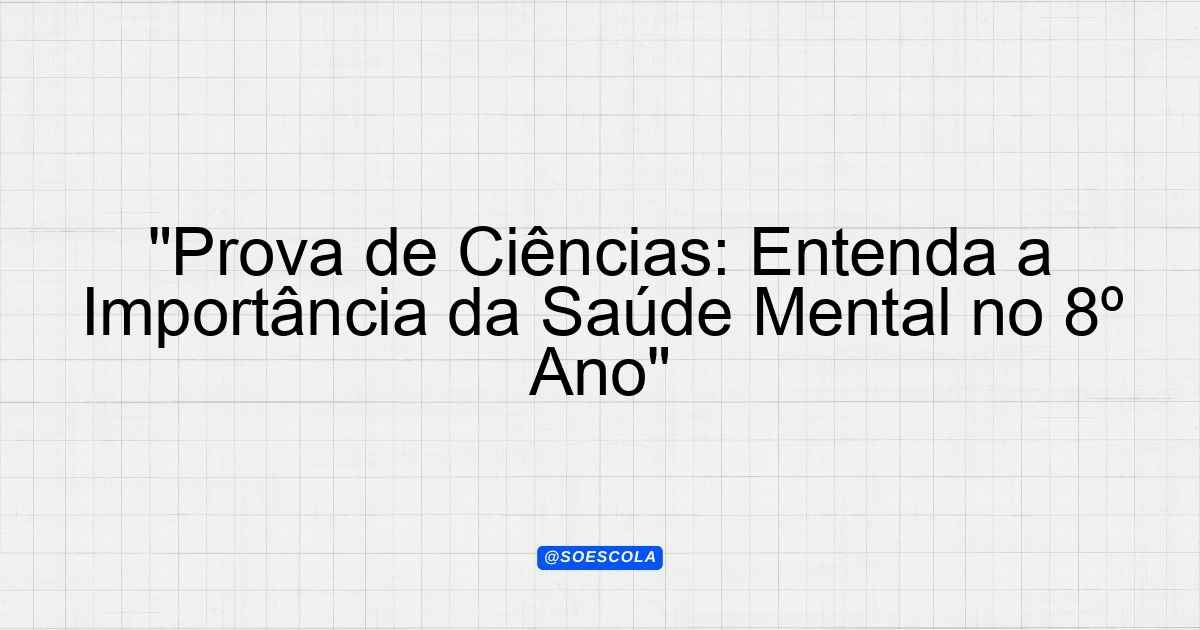Continue lendoTema: A importancia do cuidado com a saúde mentalEtapa/Série: 8º anoDisciplina: CiênciasQuestões: 20 Prova de Ciências: A Importância do Cuidado