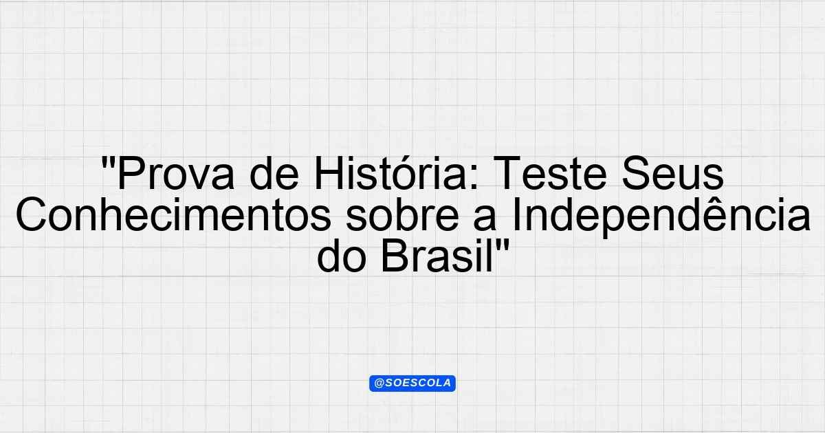 Continue lendoTema: independência do BrasilEtapa/Série: 8º anoDisciplina: HistóriaQuestões: 10 Prova de História: Independência do Brasil Instruções: Leia atentamente cada uma das