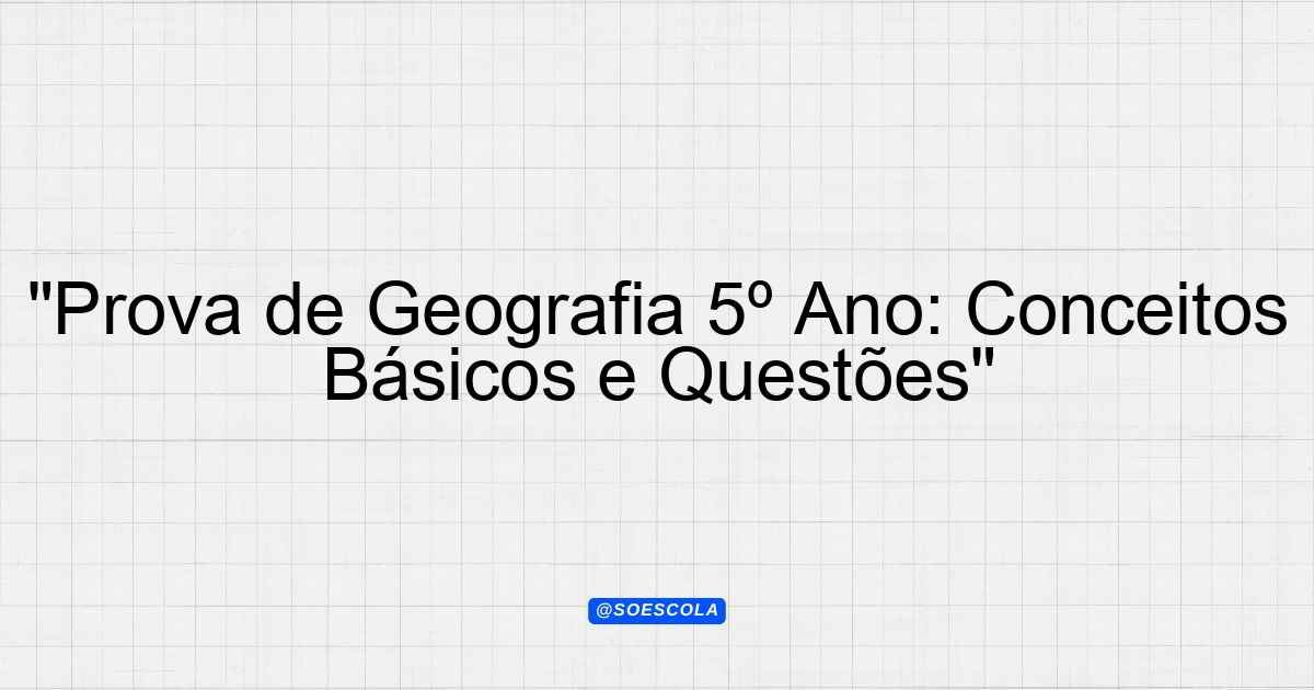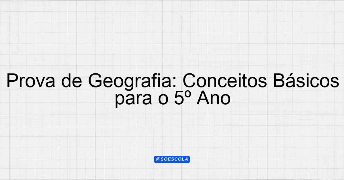 Continue lendoTema: CONCEITOS BASICOS EFUNTAMENTOS DA DISCIPLINAEtapa/Série: 5º anoDisciplina: GeografiaQuestões: 6 Prova de Geografia – 5º Ano Tema: Conceitos Básicos e