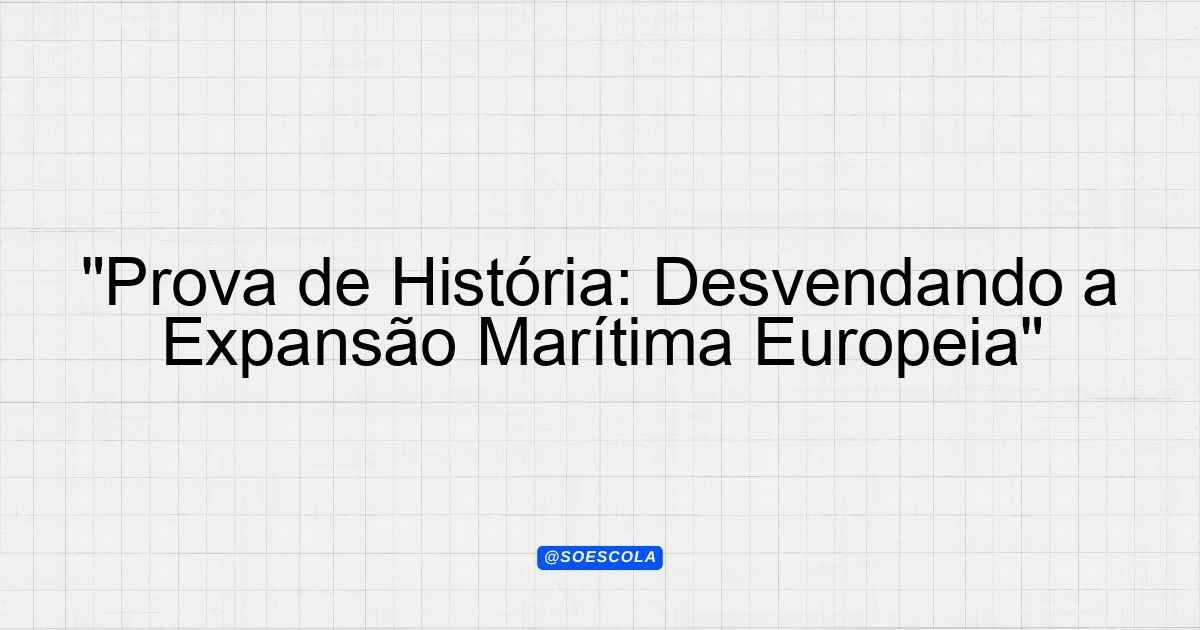 Continue lendoTema: expansão maritima europeiaEtapa/Série: 7º anoDisciplina: HistóriaQuestões: 10 Prova de História – Expansão Marítima Europeia Esta prova tem como objetivo