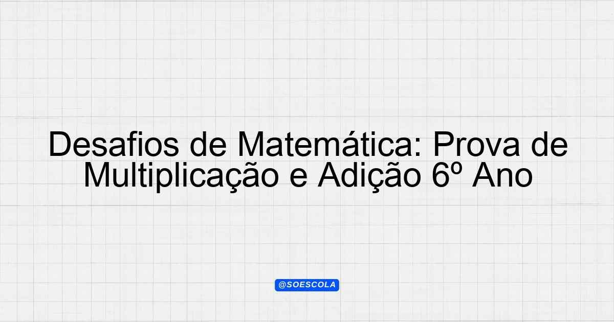 Continue lendoTema: multiplicação e adiçãoEtapa/Série: 6º anoDisciplina: MatemáticaQuestões: 15 Prova de Matemática – 6º Ano Tema: Multiplicação e Adição Instruções: Leia