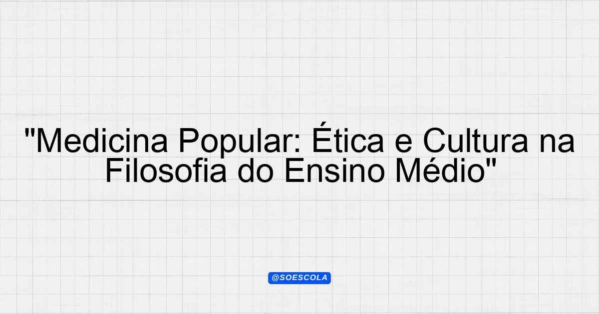 Continue lendoTema: medicina popularEtapa/Série: 3º ano – Ensino MédioDisciplina: FilosofiaQuestões: 1 Prova de Filosofia – 3º Ano do Ensino Médio Tema: