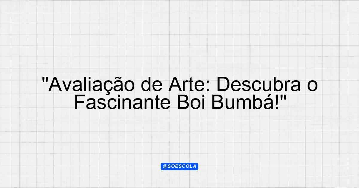 Continue lendoTema: O boi bumbáEtapa/Série: 3º anoDisciplina: ArteQuestões: 3 Avaliação de Arte: O Boi Bumbá Nome do Aluno: _________________________ Data: ____/____/____