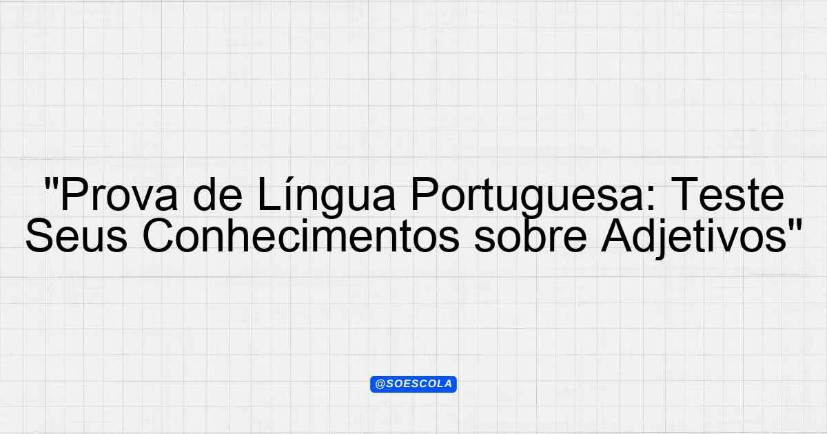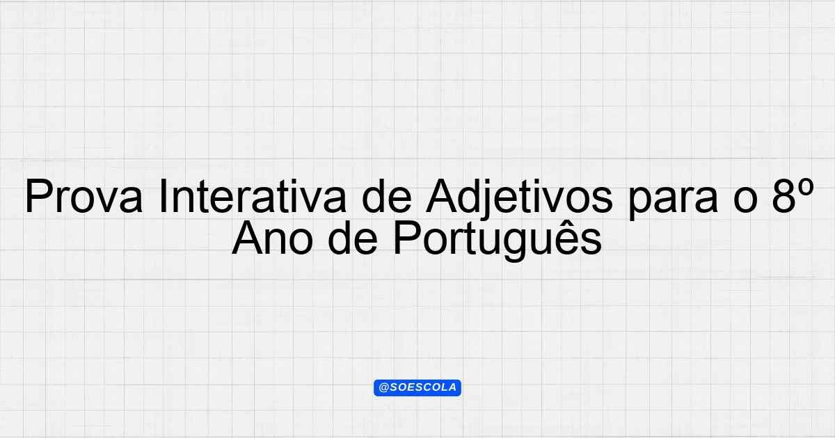 Continue lendoTema: ADEJETIVOSEtapa/Série: 8º anoDisciplina: Língua PortuguesaQuestões: 10 Prova de Língua Portuguesa: Adjetivos – 8º Ano A prova a seguir é