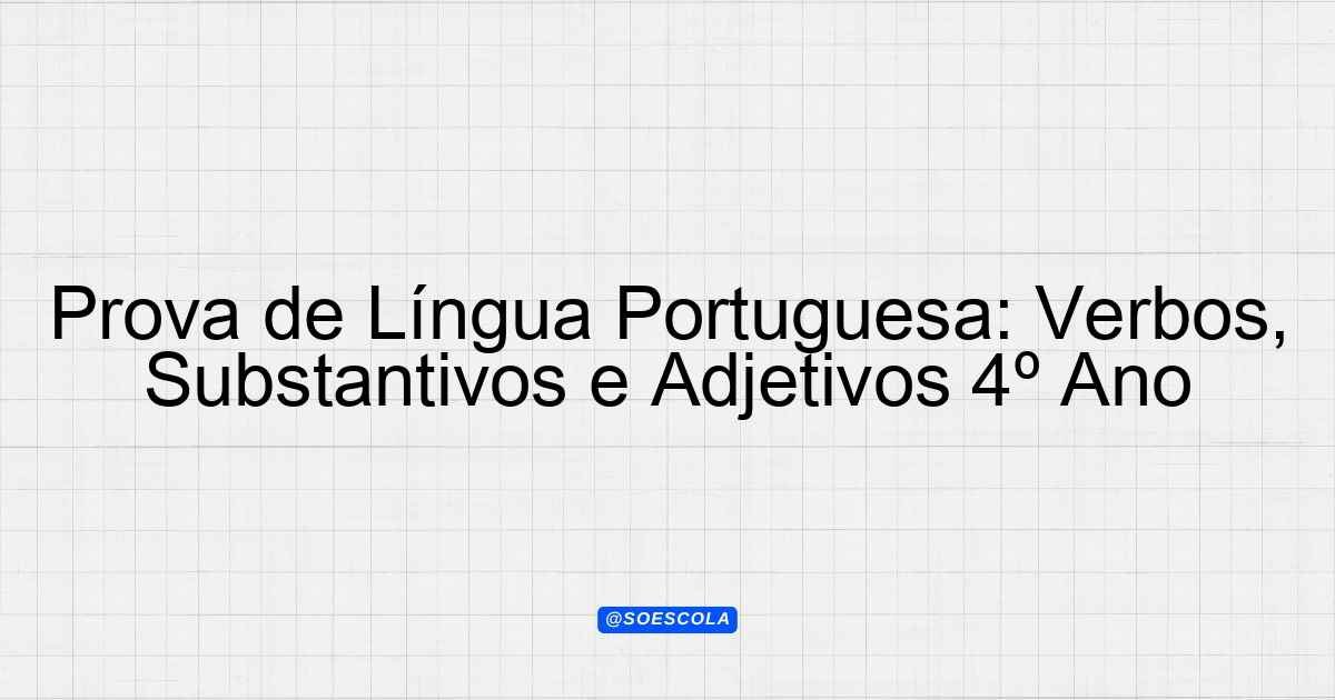 Continue lendoTema: verbo( tempo) substantivo coletivo adjetivosEtapa/Série: 4º anoDisciplina: Língua PortuguesaQuestões: 20 “`html Prova de Língua Portuguesa – 4º Ano Esta