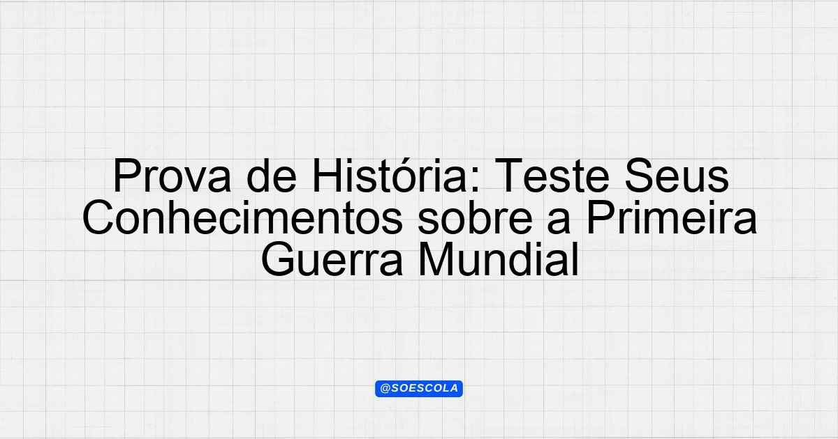 Continue lendoTema: Primeira guerra mundialEtapa/Série: 3º ano – Ensino MédioDisciplina: HistóriaQuestões: 10 Prova de História: A Primeira Guerra Mundial Instruções: Leia