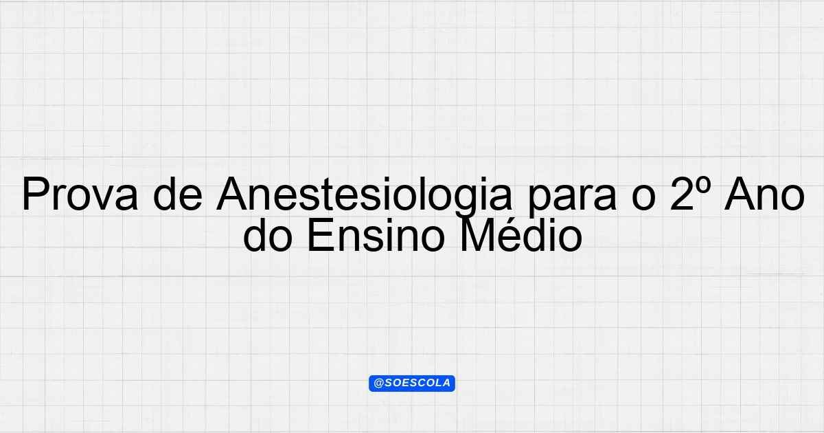 Continue lendoTema: anestesiologiaEtapa/Série: 2º ano – Ensino MédioDisciplina: Formação Técnica e ProfissionalQuestões: 4 Prova de Anestesiologia – 2º Ano do Ensino