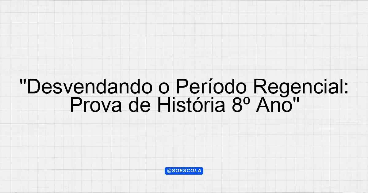 Continue lendoTema: Periodo regencialEtapa/Série: 8º anoDisciplina: HistóriaQuestões: 10 Prova de História – 8º Ano Tema: Período Regencial Instruções: Leia atentamente as