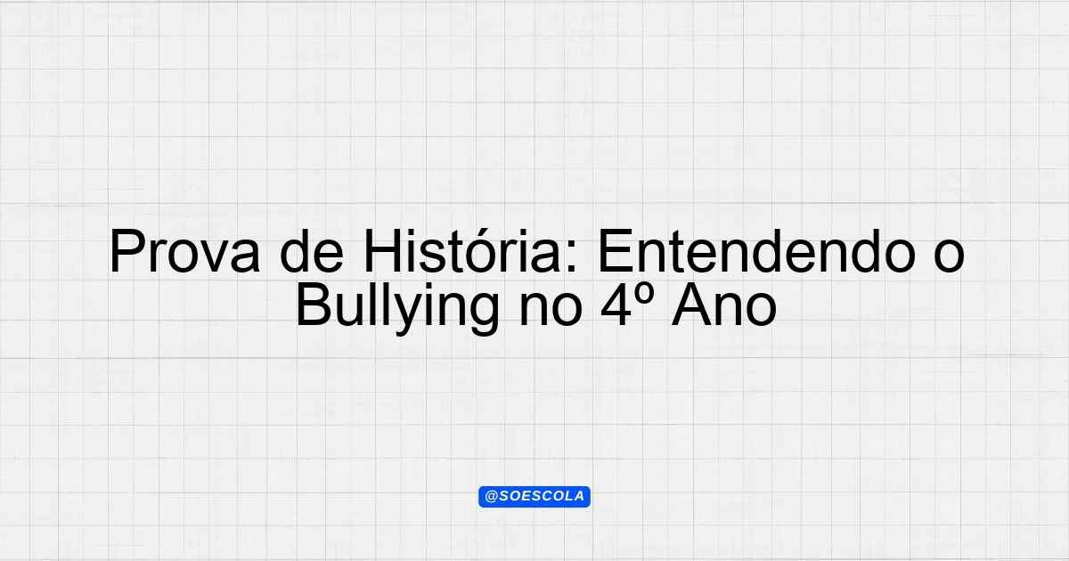 Continue lendoTema: bullynEtapa/Série: 4º anoDisciplina: HistóriaQuestões: 7 Prova de História – Tema: Bullying Nome do Aluno: ___________________________ Data: ____/____/____ Instruções: Leia