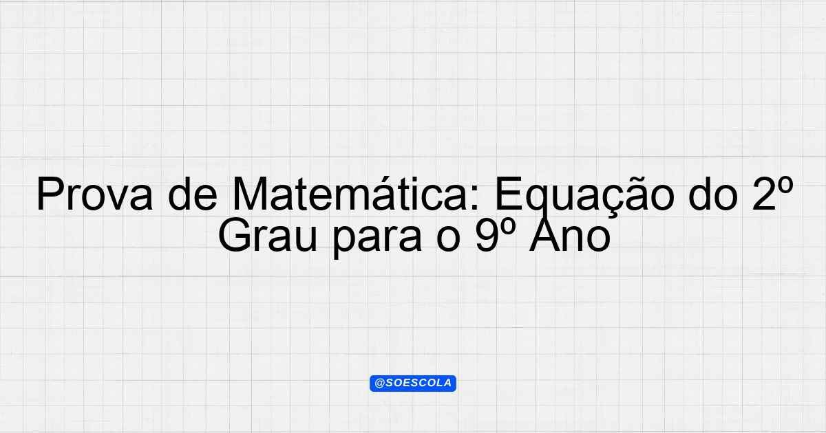 Continue lendoTema: Equaçao do 2 grauEtapa/Série: 9º anoDisciplina: MatemáticaQuestões: 10 Prova de Matemática – 9º Ano Tema: Equação do 2º Grau