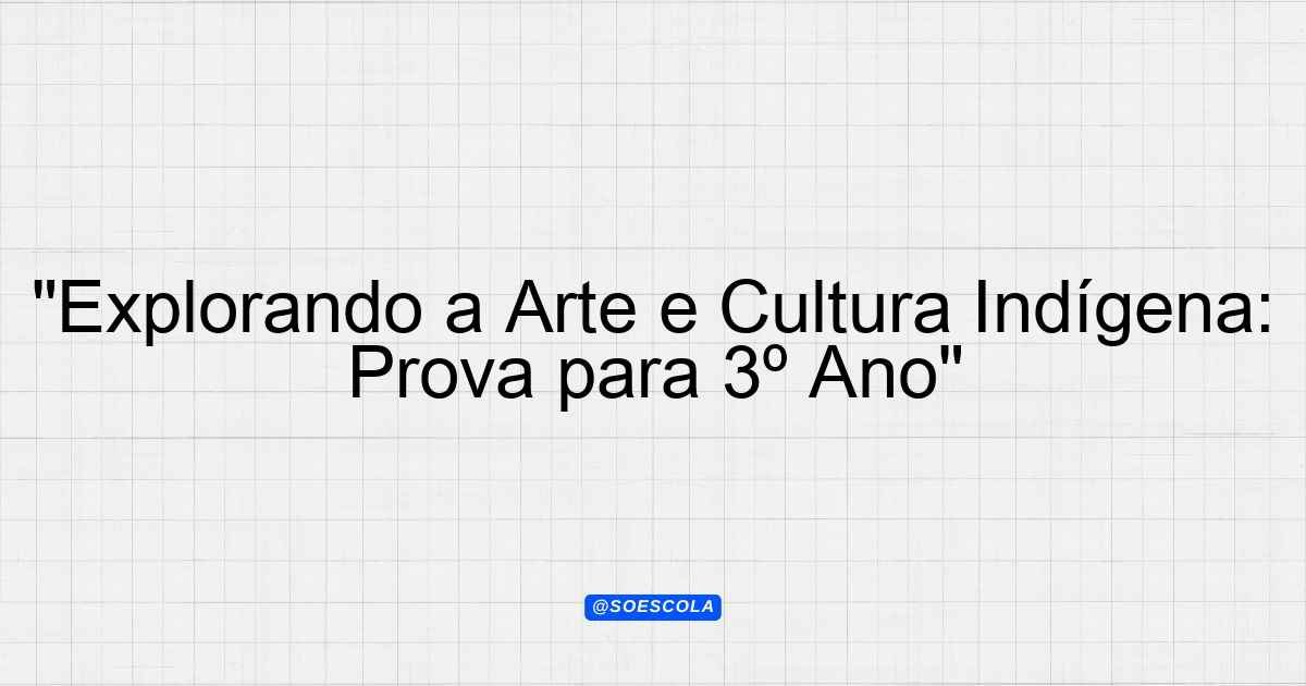 Continue lendoTema: Arte e cultura indígenaEtapa/Série: 3º anoDisciplina: ArteQuestões: 2 Prova de Arte – 3º Ano Tema: Arte e Cultura Indígena