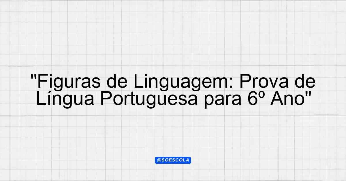 Continue lendoTema: Figuras de linguagemEtapa/Série: 6º anoDisciplina: Língua PortuguesaQuestões: 20 Prova de Língua Portuguesa: Figuras de Linguagem Nome do Aluno: _________________________