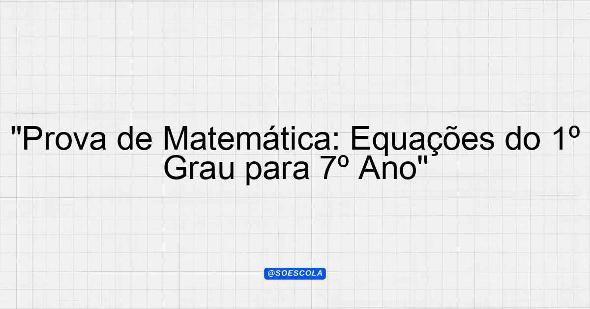 Continue lendoTema: Equações do 1º grauEtapa/Série: 7º anoDisciplina: MatemáticaQuestões: 10 Prova de Matemática – 7º Ano Tema: Equações do 1º grau