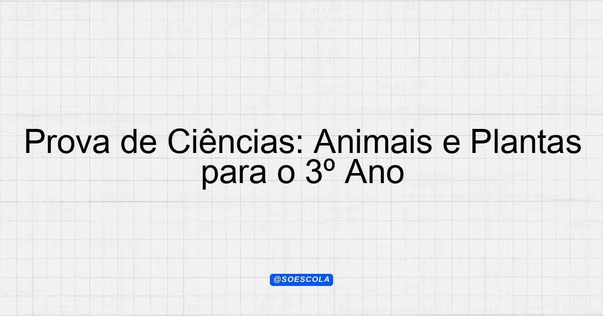 Continue lendoTema: Animais e plantasEtapa/Série: 3º anoDisciplina: CiênciasQuestões: 10 Prova de Ciências: Animais e Plantas Nome do Aluno: ___________________________ Data: ____/____/____