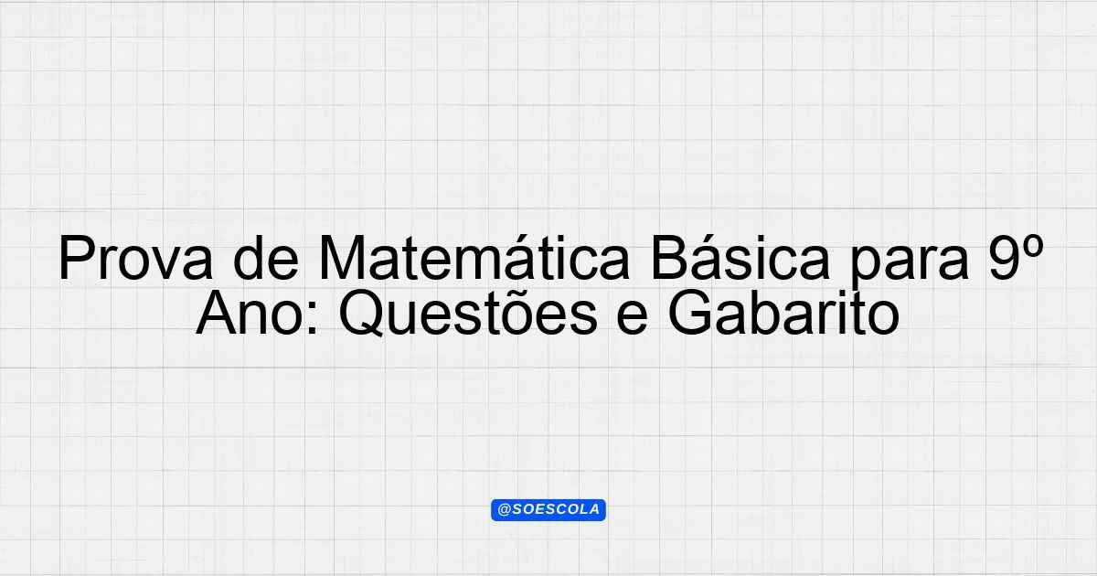 Continue lendoTema: matemática básicaEtapa/Série: 9º anoDisciplina: MatemáticaQuestões: 5 Prova de Matemática – 9º Ano Tema: Matemática Básica Instruções: Leia atentamente cada