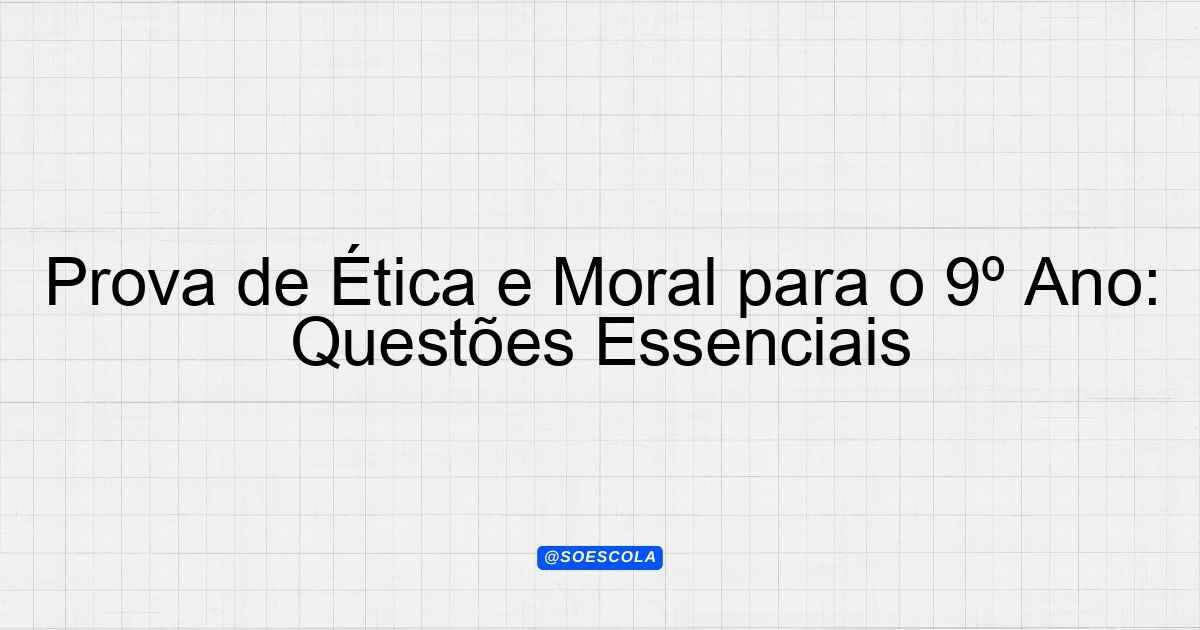 Continue lendoTema: Moral e éticaEtapa/Série: 9º anoDisciplina: Ensino ReligiosoQuestões: 5 Prova de Ensino Religioso – 9º Ano Tema: Moral e Ética