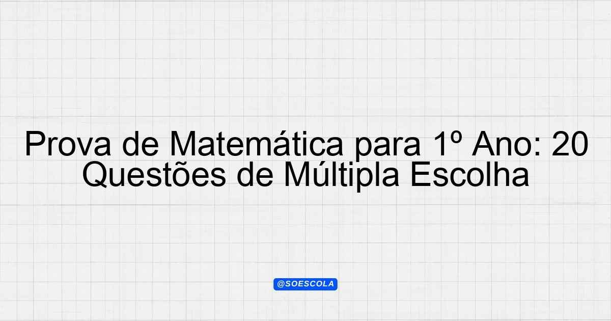 Continue lendoTema: todas as materiasEtapa/Série: 1º anoDisciplina: MatemáticaQuestões: 20 Prova de Matemática – 1º Ano Esta prova contém 20 questões de
