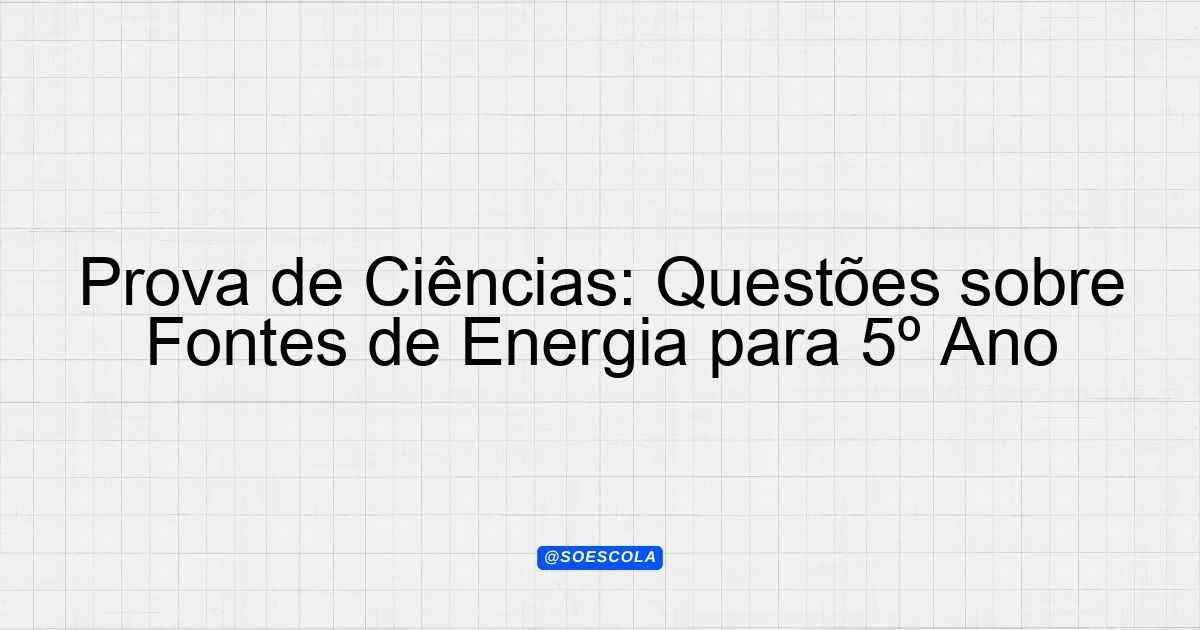 Prova de Ciências: Questões sobre Fontes de Energia para 5º Ano