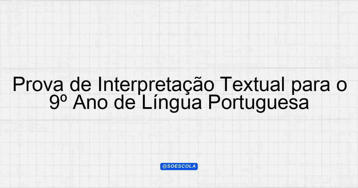Continue lendoTema: interpretação textualEtapa/Série: 9º anoDisciplina: Língua PortuguesaQuestões: 5 Prova de Interpretação Textual – 9º Ano – Língua Portuguesa Esta prova