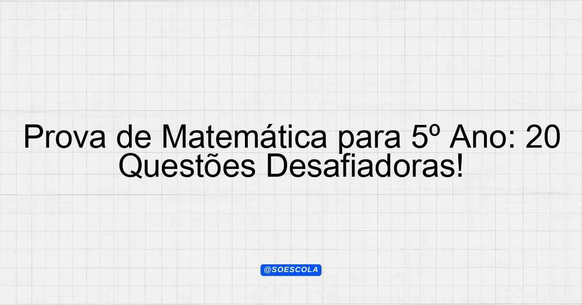 Continue lendoTema: Matemática 6 anoEtapa/Série: 5º anoDisciplina: MatemáticaQuestões: 20 Prova de Matemática – 6º Ano para Alunos do 5º Ano Instruções: