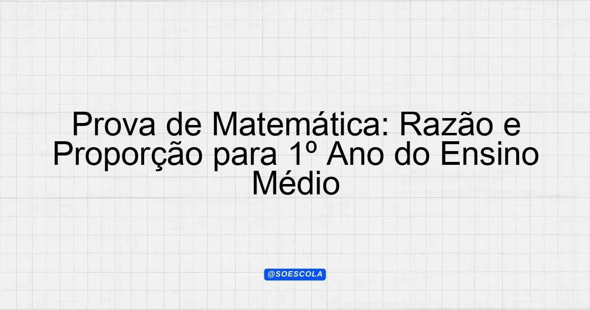 Continue lendoTema: Razão e proporçãoEtapa/Série: 1º ano – Ensino MédioDisciplina: MatemáticaQuestões: 10 Prova de Matemática – 1º Ano do Ensino Médio