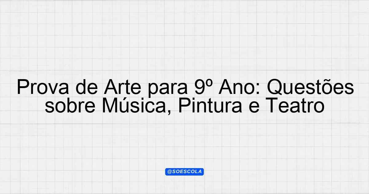 Continue lendoTema: ARTE (MÚSICA, PINTURA E TEATRO)Etapa/Série: 9º anoDisciplina: ArteQuestões: 10 Prova de Arte – 9º Ano Tema: Arte (Música, Pintura