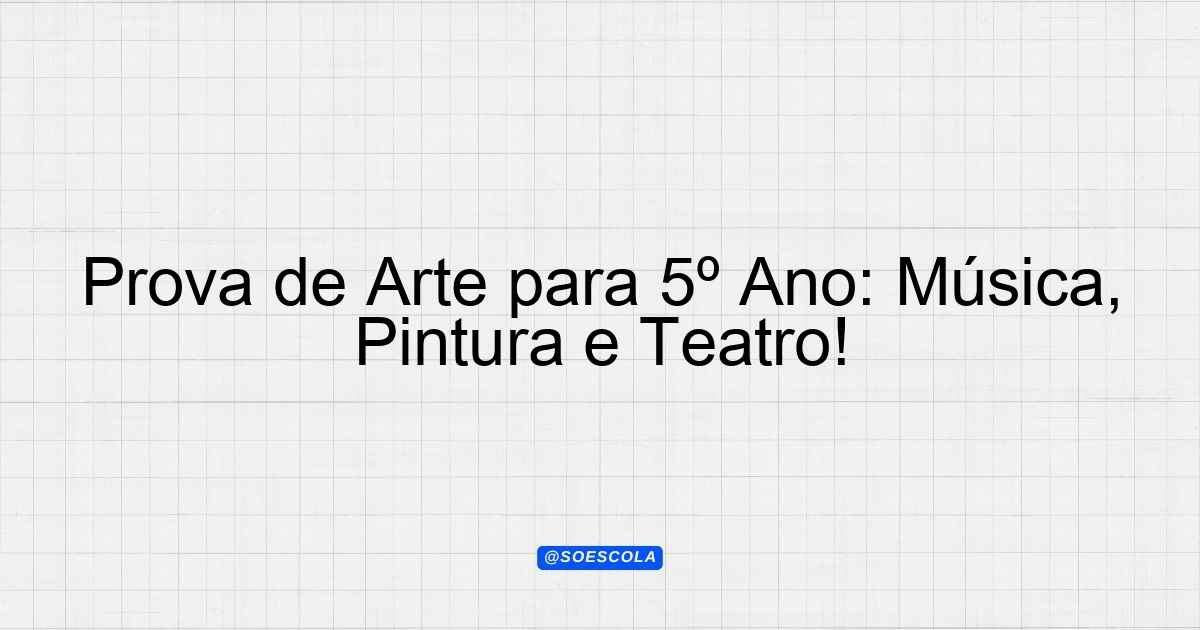 Continue lendoTema: ARTE (MÚSICA, PINTURA E TEATRO)Etapa/Série: 5º anoDisciplina: ArteQuestões: 10 Prova de Arte – 5º Ano Tema: ARTE (MÚSICA, PINTURA
