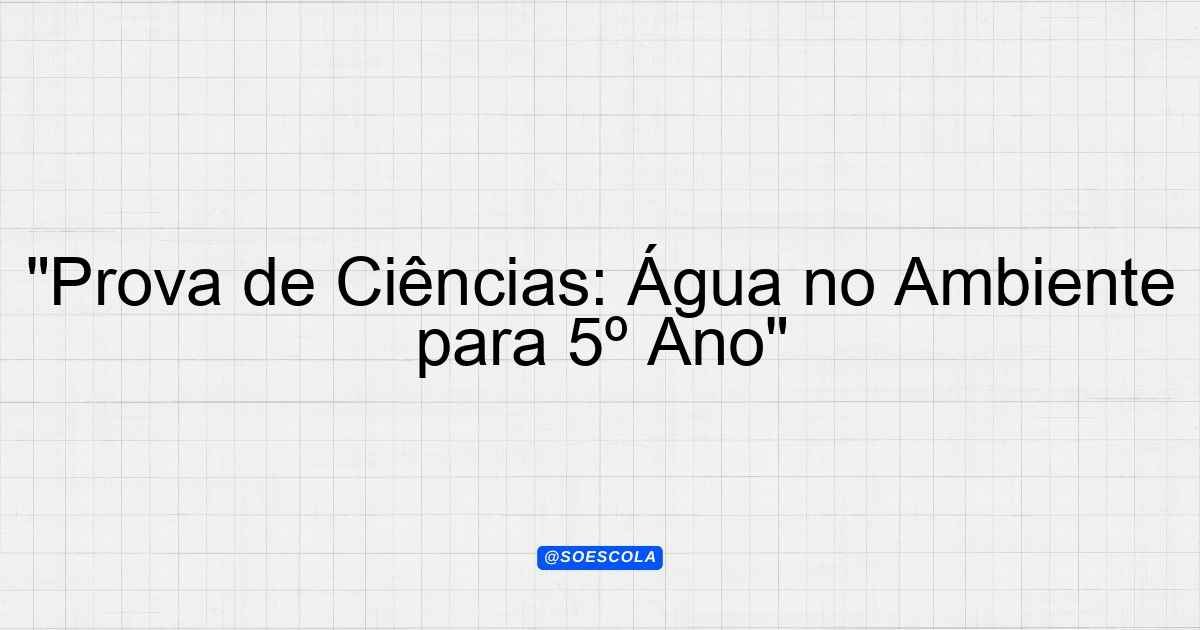 Continue lendoTema: Água no ambienteEtapa/Série: 5º anoDisciplina: Ciências da Natureza e suas TecnologiasQuestões: 5 Prova de Ciências da Natureza e suas